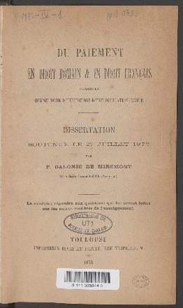 La thèse porte Toulouse : Imprimerie Rives et Privat (9 rue tripière), 1872 | |