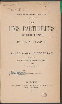 Faculté de droit (Toulouse ; 1805-1896) – Organisme de soutenance | |