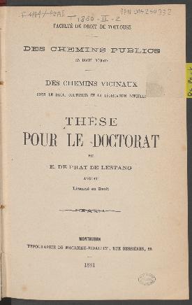 La thèse porte : Montauban : Typographie de Macabiau-Vidallet (25 rue Bessières), 1881 |