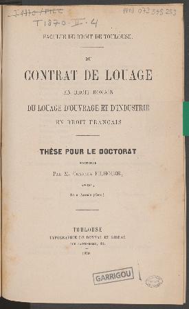 La thèse porte : Toulouse : Typographie de Bonnal et Gibrac (44 rue Saint- Rome), 1870 |